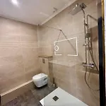 A parquet floor adds a touch of elegance to the apartment, which is also furnished with a sofa and a work desk. Bathroom amenities comprise a separate toilet and a shower, as well as hair dryers and bath sheets.